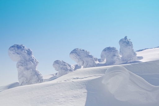The best way to experience the monsters up close? Take the Zao Ropeway to the summit station at Jizo Sancho. From there, a winter wonderland unfolds: a white field of icy beasts stretching toward the horizon.